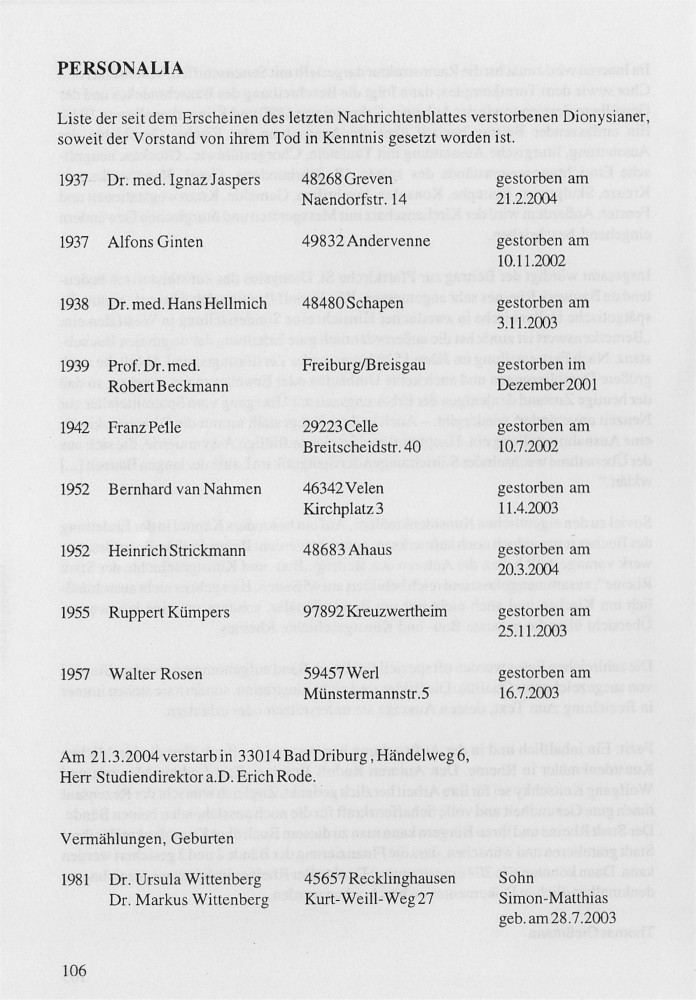 Verein Alter Dionysianer e.V. Rheine 1927 Jahr-