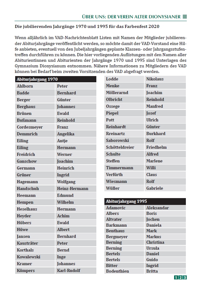 Verein Alter Dionysianer e.V. Rheine 1927 Jahr-